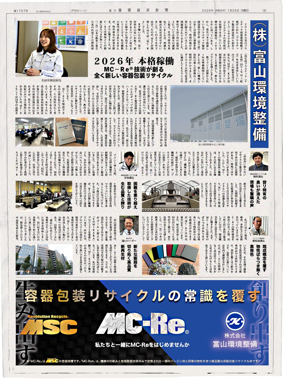 機械と樹脂を融合したオリジナルシステムRevolution Recycle®️ 私たちMSCはリサイクルに革命を起こします。